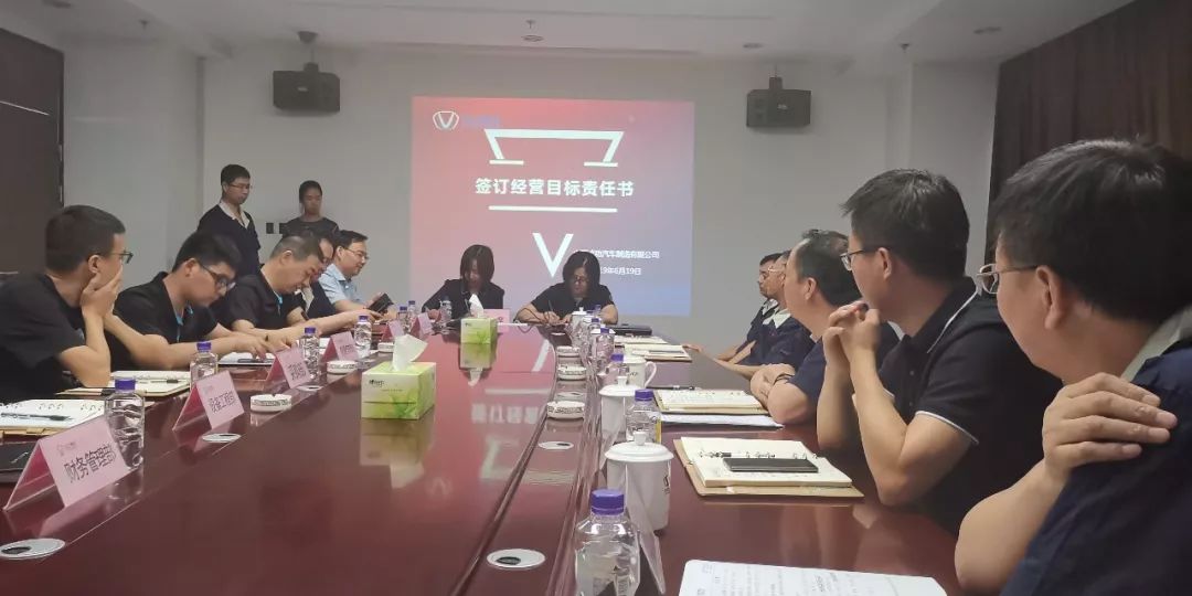 此次会议根据集团5月22日批复成功汽车(原汽车事业部)关于2019经营目标调整计划和基础管理、重点工作(质量管理、产品研发项目、运营平台)等批复文件精神。首先听取了成功汽车副总经理张莹莹对《经营目标责任书指标权重设置、考核及结果应用情况》详细解读。她说,为了顺利达成集团下达的汽车板块经济目标责任,结合汽车板块机构重组情况,主要对今年3月13日与各单位、部门签订的《2019年经济目标责任书》进行修订。期间,先后将修订的《经营目标责任书》反馈各部门征求意见、会议讨论,三易其稿,最终形成了目前的《经营目标责任书》并具备了签订的条件。另外,因新班子成员业务进行了重新分工,此次,总经理再度与分管副总经理签订《安全目标责任书》,各分公司、各部门仍执行原《1+3责任书考核事项》对各级管理人员继续实施绩效管理,这是成功汽车经营管理的需求,只有“指标层层分解,责任层层落实,千斤重担人人挑,人人肩上有指标”,才能有效保障和顺利实现成功汽车的战略目标。