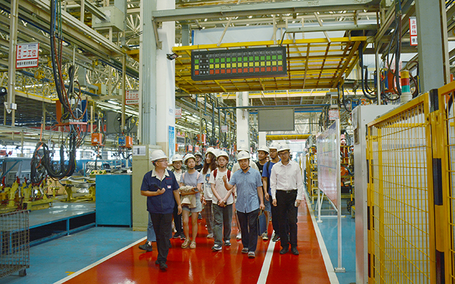 随后,杜教授一行来到成功汽车,实地参观了四大生产线。车厂副总经理董俊超陪同参观并为师生们进行了详细介绍。在总装车间,师生们对目前成功汽车的整车产品饶有兴致,问价、问参数、问销量,现场提问讨论不停,学习氛围热烈浓厚。