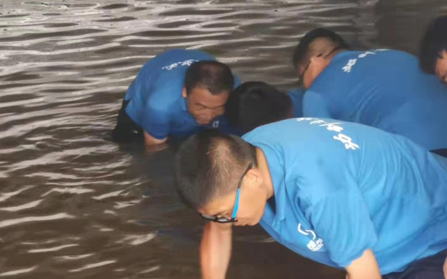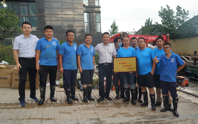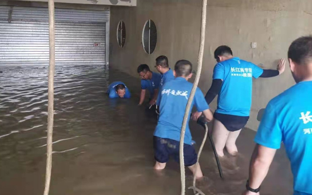 7月27日进入救援行动的第四天,微风习习天气阴暗,虽然凉爽不少但还会降雨的隐忧笼罩在大家心头,一旦下雨对整个任务进度都会受到影响,所以救援队提前做好准备和应对措施,提前把帐篷支起来避免发电机淋雨受潮产生故障,雨衣雨具提前准备好以防不时之需。随着新增5台大功率抽水设备的全部启用,抽水效率明显提升,截止27日晚八点水位下降3米多,剩余水体最深处不足1米。随着水位下探救援探队员们需要一次次进入污水中进行水泵下移和水带调整,看着他们一次次扑倒在水里,在场的人心里都无比心疼,但考虑业主有家不能回的急切心情和长时间浸泡对楼体地基产生的危害,大家还是继续发挥不怕苦不怕累的精神顽强奋战!看着水位一点一点的下降,大家还是非常欣慰,感觉到了我们驰援郑州艰苦拼搏取得成果显著、感受到团结一致齐心协力相互关爱的团队精神、感受到了企业紧急出动驰援灾区的真情大爱!