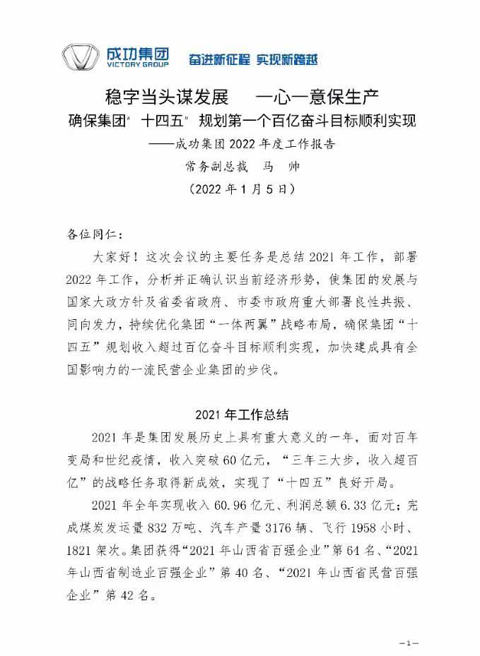 稳字当头谋发展 一心一意保生产 确保集团“十四五”规划第一个百亿奋斗目标顺利实现 ――sunbet申搏 2022 年度工作报告