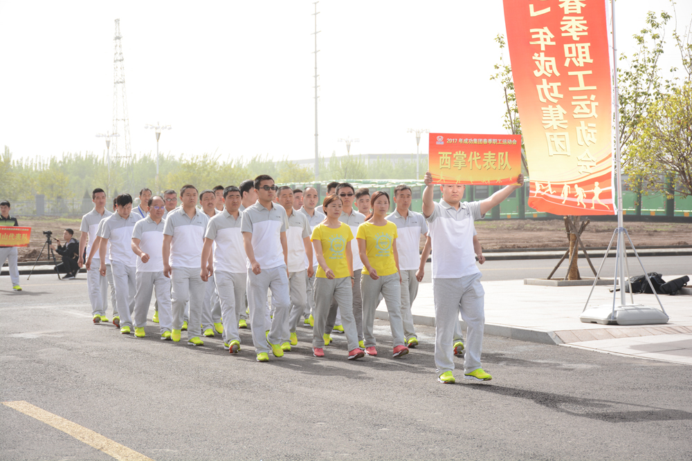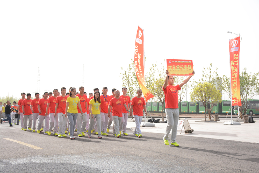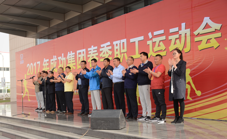 雨后的大地清新气爽,微露的晨曦和煦如春。成功汽车办公大楼前装饰一新的开幕式现场披上了节日的盛装,硕大的红色气球和红色的长幅标语随风飘逸,十数面标旗点缀在大楼广场四周,更加显得喜庆非凡。上午九时许,裁判员、运动员组成的方队伴着《运动员进行曲》依次通过大会主席台,受到集团领导和观众的一片喝彩。队列式结束,整个大会现场奏响了雄壮的《国歌》;随后,集团副总裁陈国东致开幕辞,运动员、裁判员代表分别宣誓;集团总裁马国利宣布2017年集团春季职工运动会开幕。
