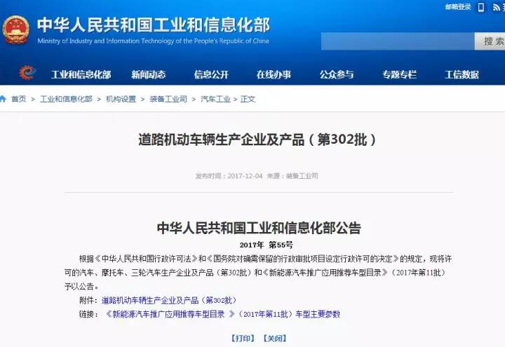 12月5日,工业和信息化部装备工业司发布《道路机动车辆生产企业及产品公告》(第302批),《新能源汽车推广应用推荐车型目录》(2017年第11批),成功SCH5025XXYD1-BEV3纯电动厢式货车公告发布,同时入围推荐目录,为该车型投放市场打下了国家认证和财政支持的根基。